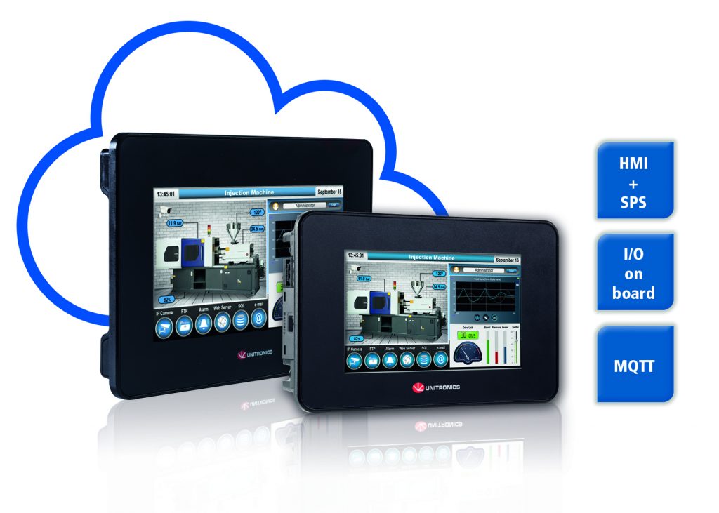 Die Steuerungsserie UniStream von Spectra kombiniert HMI, SPS, digitale und analoge I/Os sowie eine frei herunterladbare Programmiersoftware in einer intelligenten Lösung. Neu sind die 5- und 7“-Built-in-Modelle, die neben HMI und SPS auch zahlreiche analoge und digitale I/Os in einem kompakten Gehäuse vereinen. Die Anzahl der integrierten I/Os kann mittels Remote-DIN-Schienenmodule über Ethernet auf insgesamt 2.048 I/Os erweitert werden. Zusätzliche Feldbuskomponenten anderer Hersteller werden über Modbus RTU/TCP bzw. CANopen eingebunden. Neben MQTT, das den Weg in die Cloud erleichtern soll, werden auch SNMP, VNC, FTP, SMS, E-Mail und die Kommunikation über GSM/GPRS-Modem unterstützt. Die Programmierung sowohl des HMI als auch der Steuerung erfolgt über die moderne und kostenfreie Entwicklungssoftware UniLogic Studio. Diese benutzerfreundliche und grafisch orientierte Programmiersoftware sorgt nach Herstellerangaben für eine deutliche Reduzierung des Programmieraufwands.
