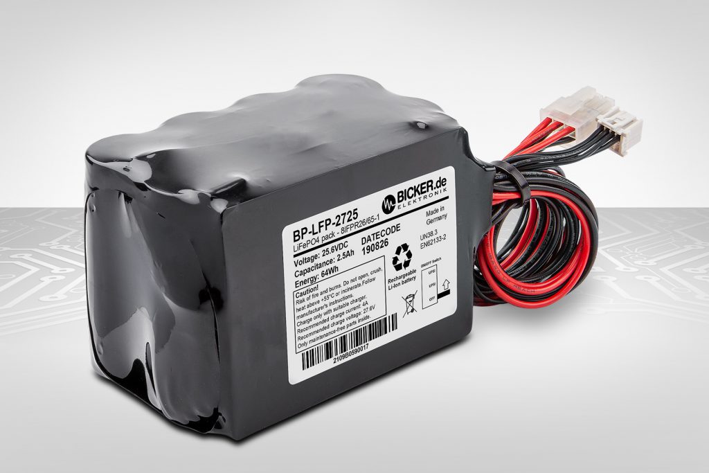 Bicker Elektronik stellt das eigensichere Batteriepack BP-LFP-2725 für Notstromversorgungs- und DC-USV-Systeme vor. Der Lithium-Eisenphosphat-Energiespeicher ist für mehr als 6.000 Vollzyklen ausgelegt und somit für den Einsatz in anspruchsvollen Applikationen in der Industrie geignet. Er ist nach IEC62133-2 und UN38.3 getestet und zertifiziert. Aufgrund der verbauten LiFePO4-Zellen in Kombination mit dem Hochstrom-BMS-System liefert das Batteriepack seine volle Leistung auch bei hohen Betriebstemperaturen bis +55°C (max. 15A Dauerstrom) sowie im gefrorenen Zustand bei -20°C (max. 6A Dauerstrom). Das Batterie-Management soll die Zellen vor nahezu allen schädlichen Einflüssen schützen und für eine dauerhaft hohe Kapazität sorgen. Alle kritischen Fehlerzustände sind redundant abgesichert. Komplexe Stromsparmodi verhindern laut Hersteller zudem eine schnelle Eigenentladung des Batteriepacks bei Nichtgebrauch.
