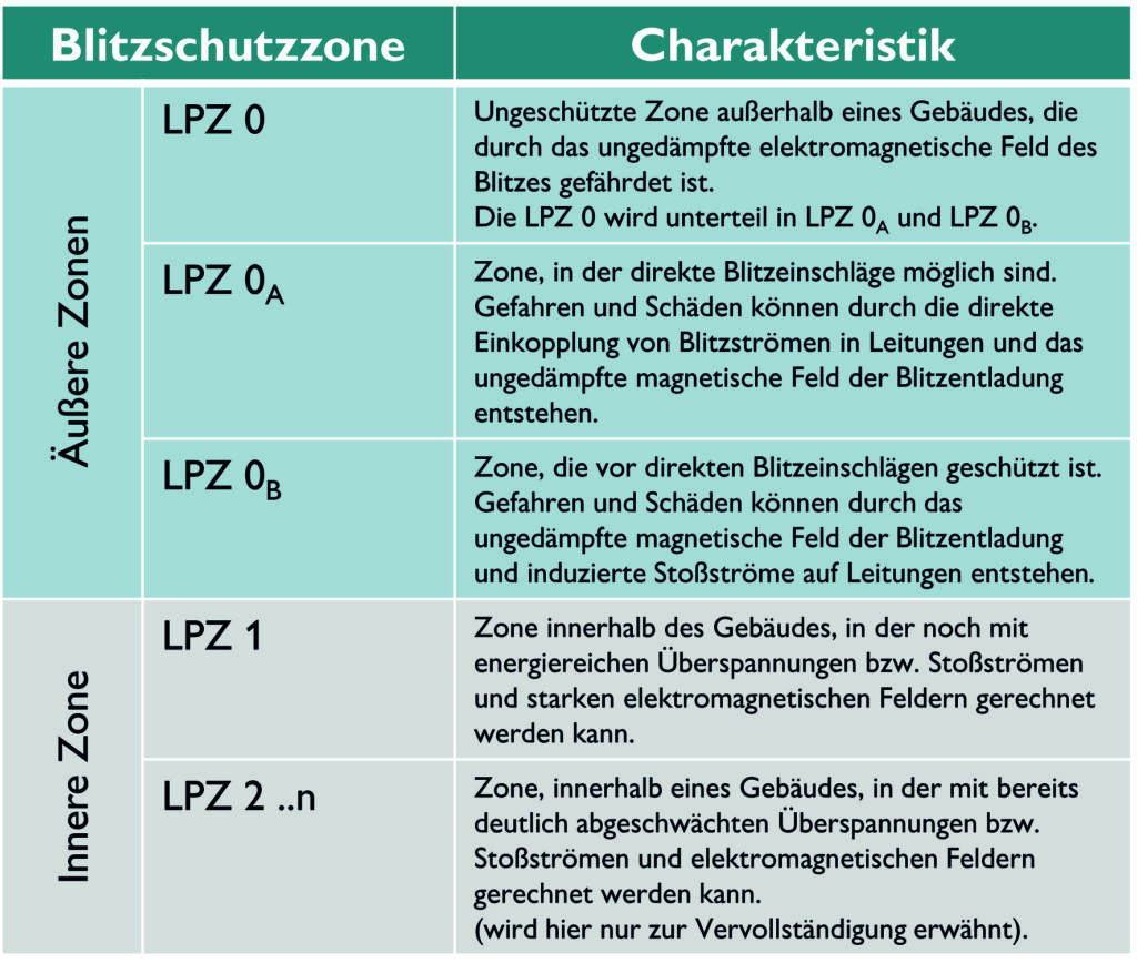 Schutzmaßnahmen und Blitzschutzzonen-Konzept