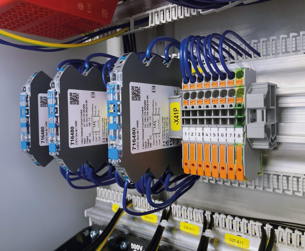 Die Locc-Box (Lütze Overload Current Control) ist in vielen Schaltschränken weltweit quasi Standard in puncto intelligenter Überwachung von Kurzschluss und Überlast. Dank ihres patentierten, analogen Auslöseverhaltens entlang fünf definierter Kennlinien – von flink (etwa für Sensoren) bis super träge (etwa für Motoren oder Lüfter) – lassen sich selektive Spannungsversorgungen aufbauen. Abgeschaltet werden nur die betroffenen Stromkreise – alle anderen können problemlos weiterlaufen, und damit die gesamte Anlage. Das System signalisiert per grüner und roter LEDs den erkannten Fehler; die Diagnose erfolgt über das Gerät selbst oder über entsprechende Schnittstellen zu verschiedenen Feldbussystemen, wie Profinet oder Ethercat.