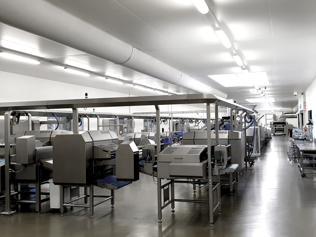 Ein Anbieter für solche Technik ist AMF Bakery Systems. Das Unternehmen mit Hauptsitz im US-amerikanischen Richmond, Virginia, realisiert für Kunden auf der ganzen Welt Komplettlösungen zur Herstellung von Brot und Brötchen, Croissants, Kuchen und Süßgebäck oder auch Pizza. „Unser Portfolio deckt von der Teigherstellung und -verarbeitung über das eigentliche Backen bis zur Verpackung sämtliche Prozessschritte ab“, erklärt Lex van Houten. Er ist Regional Marketing Manager EMEA bei AMF in den Niederlanden, wo das Unternehmen drei Standorte besitzt. „Die einzelnen Maschinen kombinieren wir mit Fördertechnik, Steuerungen und Software zu nahtlos vernetzten und vollautomatischen Linien, mit denen unsere Kunden besonders effizient arbeiten können.“
