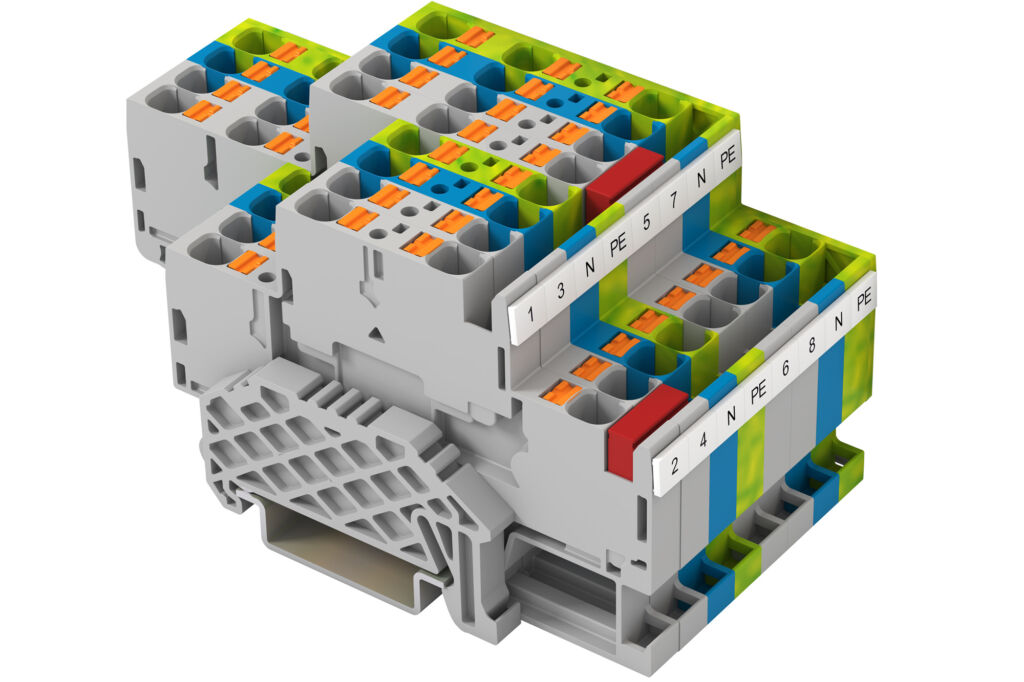 Als platzsparende Kontaktierungslösung führt Conta-Clip Doppelstock-Reihenklemmen für Bemessungsquerschnitte bis 4mm² im Programm. Die kompakten Klemmen vom Typ PRKD 4 und die entsprechenden Schutzleiterklemmen PSLD 4 sind mit zwei oder drei Anschlüssen pro Etage erhältlich und halbieren den für die Installation benötigten Einbauraum. Neben dem geringen Platzbedarf zeichnen sich beide Baureihen durch eine große Varianz und einfache Handhabung aufgrund vergrößerter Einführungskanäle und minimierter Steckkräfte aus. Zum schnellen Lösen eingeführter Adern dient ein integrierter Pusher.