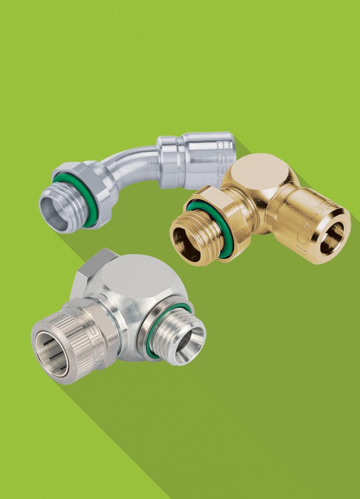 Eisele hat einen kugelgelagerten Drehanschluss entwickelt, der Druckluft von einem starren auf ein rotierendes Bauteil übertragen kann. Überall dort, wo vernickeltes Messing eingesetzt werden kann, ist der neue Drehanschluss geeignet und kann bei einem Arbeitsdruckbereich von -0,9 bis 16bar eingesetzt werden. Der Steckanschluss im Programm Basicline ist der erste voll drehbare Anschluss im Sortiment. Möglich wird die Drehbewegung durch ein Hybridkugellager aus Edelstahl mit Keramikkugeln, das für Drehzahlen bis 800rpm zugelassen ist. Bei Kühlwasserinstallationen in elektrischen Anwendungen kommt es auf hohe Dichtigkeit an. Dafür hat der Hersteller die Steckverschraubungen der Liquidline-Serie 2500 aus entzinkungsbeständigem Messing im Programm. Diese sollen aufgrund patentierter Verschraubungstechnik besondere Anforderungen an die Schlauchhaltefähigkeit erfüllen.