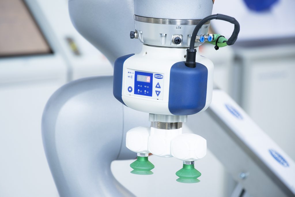 J. Schmalz ziegt auf der diesjährigen Hannover Messe Lösungen für die digitale Fabrik. Im Mittelpunkt stehen die Vernetzung einzelner Vakuumkomponenten sowie komplexe Greifsysteme für Portal- und Roboteranwendungen. Neben der Automatisierungstechnik finden auch moderne Handhabungssysteme Platz auf dem Messestand. Besonders hervorzuheben ist der elektrische Vakuumerzeuger ECBPi. Es handelt sich um ein intelligentes und druckluftunabhängiges System, das sich für die mobile Robotik, für das vollautomatisierte Kleinteilehandling sowie für stationäre Handhabungsaufgaben mit Cobots eignet. Über IO-Link erhält der Anwender Daten zum Energieverbrauch und zum Anlagenzustand sowie z.B. Handlungsempfehlungen zur vorbeugenden Wartung. Alle Daten stellt der Vakuumerzeuger im Feldbussystem oder in der Cloud bereit. Parametriert werden kann er nun erstmals über die App Schmalz ControlRoom. Ebenfalls um eine Parametrierfunktion per App erweitert wurde das Compact Terminal SCTMi.