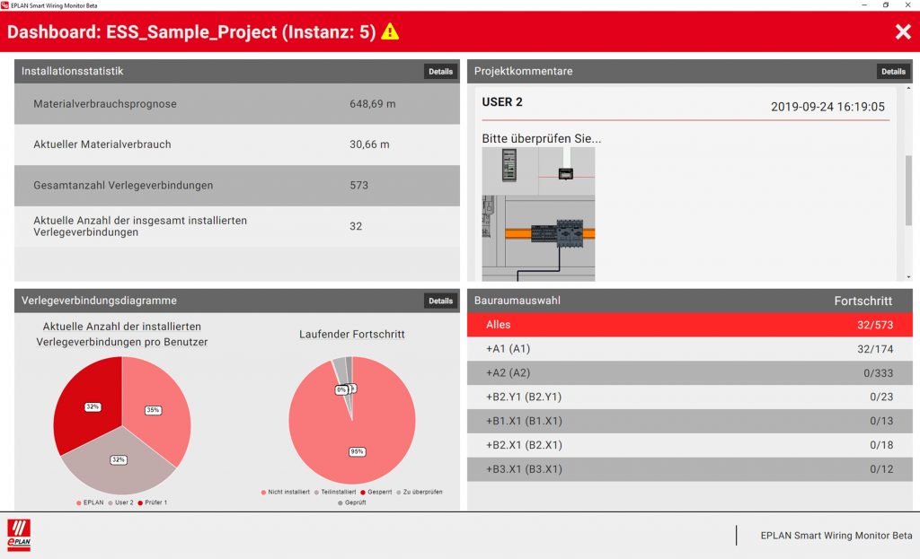 Im Rahmen der SPS wird auch die neue Version von Eplan Smart Wiring vorgestellt. Das Tool bietet eine neue Bedienoberfläche für unterschiedliche Workflows, die Nutzer individuell auf ihre Bedürfnisse anpassen können. Architektur und Layout des Monitors wurden komplett überarbeitet. Der Verdrahtungsstatus von Projekten wird nun direkt angezeigt, inklusive Prüfmodus. Dashboards können individuell angepasst werden und mit Hilfe neuester Display-Bibliotheken für Webdiagramme automatisch angezeigt werden. Der Anwender kann die Software per Touchscreen bedienen und den Verdrahtungsfortschritt direkt im System hinterlegen. Auch die Bereitstellung der Daten auf einem Zentralserver wird zugelassen. Ab der Version 2.9 können User auch Kabel und Schläuche in ihre Workflows integrieren. Dabei werden die unterschiedlichen Verbindungsarten berücksichtigt und verfügbare Informationen zu Kabeln und Schläuchen automatisch angezeigt. Zusatzinformationen wie BMK, Kabellänge, Absetzlänge oder auch die Anzahl der Verbindungen im Kabel lassen sich ebenfalls bestimmen.