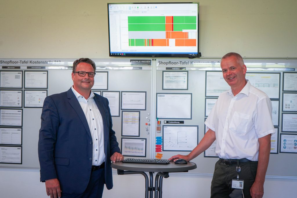 Eberle Rieden beschäftigt derzeit fast 180 Mitarbeiter am Standort und hat einen Jahresumsatz von derzeit 34 Mio.€. Dabei gehört das Unternehmen seit mehr als 14 Jahren zur Kern-Liebers-Firmengruppe mit mehr als 50 Einzelgesellschaften. Seit mehr als drei Jahren ist Frank Laurin inzwischen bei Eberle Rieden tätig und als Produktionsleiter auf einer Fläche von mehr als 10.000 m² für die Herstellung sämtlicher Produkte sowie für die Mitarbeiter verantwortlich, welche hier im Drei-Schicht-Betrieb tätig sind. „Ich denke, jeder ist schon einmal mit einem unserer Produkte in Berührung gekommen“, sagt Frank Laurin. „Sie finden sie etwa als Schließbügel oder Airbag Clip in Ihrem Fahrzeug oder als Scharnier an einem Ihrer Möbelstücke.“ Gerhard Schöll, Geschäftsführer bei Eberle Rieden sagt: „Wir haben uns eine Nullfehlerpolitik bei allen Produkten, Prozessen und Dienstleistungen auf die Fahnen geschrieben. Da war es uns sehr wichtig, für unseren Produktionsbereich ein smartes, transparentes und cleveres System zu finden, welches uns eine maximale Transparenz ermöglicht.“