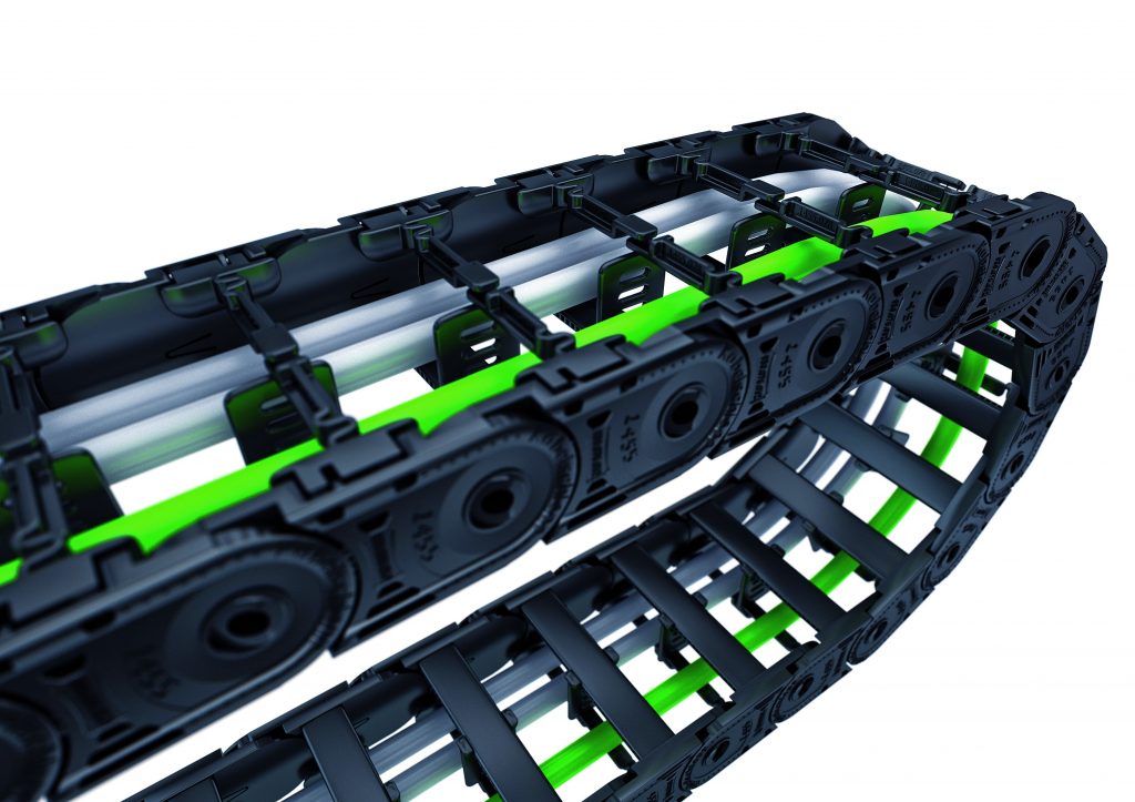 Die Energieführungen der Serie Easytrax von Tsubaki Kabelschlepp sind ab sofort in drei zusätzlichen Ausführungen erhältlich. Insgesamt umfasst die Serie nun fünf Modelle mit Innenhöhen von 4,6 bis 30mm. Dank der neuen Dimensionen ergibt sich für die Energieketten ein neues Anwendungsspektrum – vom Sonnendach über Büromöbel bis hin zum Montageautomaten. In jedem Fall profitieren die Anwender von der besonders schnellen Leitungsbelegung ohne Werkzeug: In weniger als einer Sekunde lässt sich bis zu ein Meter Energieführungskette befüllen. Bislang umfasste die Familie die Energieführungsketten der Typen ET0115 und ET0320 mit Innenhöhen von 4,6 bzw. 18mm; neu ab Lager verfügbar sind nun die ET0180, ET1455 und ET0350 mit Innenhöhen von 11,9, 25 und 31mm.