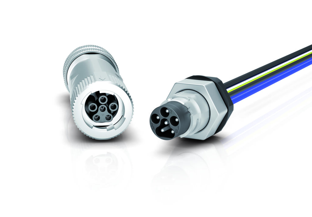 Anspruchsvolle Anwendungen in der Industrie verlangen heute nach kompakten, robusten Steckverbindungen, die hohe Ströme und Spannungen zuverlässig übertragen. Spezielle Flanschteile von Binder fungieren als Steckpartner für den konfektionierbaren Kabelsteckverbinder PBC15. Durch die Kombination lassen sich passgenaue Lösungen für eine Vielzahl von Anwendungen, z. B. in der Antriebstechnik, realisieren. Die Flanschteile schaffen nahtlose Verbindungen für sichere Power- sowie Signalübertragung und unterstützen somit die Vorteile des PBC15-Systems. Sie sind als Flanschstecker und Flanschdose (mit Verriegeler), und jeweils als ungeschirmte Kunststoff-Varianten oder geschirmte Varianten mit Metallkomponenten erhältlich. Sie bieten standardmäßig Litzenquerschnitte von 1,5 mm² und 2,5 mm² bei Litzenlängen von 250 mm, was eine Stromübertragung von bis zu 16 A bei 630 V ermöglicht. Die PBC15-Flanschteile sind mit einem M20x1,5 Befestigungsgewinde ausgestattet, welches direkt in das kundenspezifische Gehäuse, oder aber mithilfe einer Kontermutter im Geräte- oder Motorgehäuse befestigt werden kann. Per ¼ Umdrehung lässt sich eine Schnellverriegelung bewerkstelligen. Die normierten Flanschteile sind gemäß DIN EN IEC 61076-2-116 herstellerübergreifend kompatibel und bieten somit maximalen Handlungsspielraum.