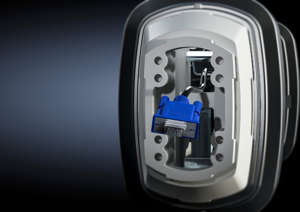 Bis zu 100% mehr Platz zur Kabelführung und problemlose Durchführung von vorkonfektionierten Steckern bis zu 17 x 59mm – auch nachträglich. – Bild: Rittal GmbH & Co. KG
