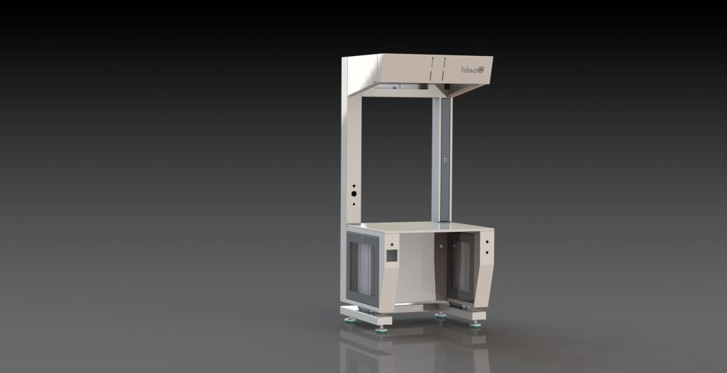 Auf der Motek hat Häwa seinen neuen Handarbeitsplatz vorgestellt. Der Arbeitsplatz ist mit einer elektrischen Höhenverstellung ausgestattet, die ein bequemes Auf- und Abfahren der Arbeitsfläche ermöglicht. Pneumatische und elektrische Anschlüsse lassen sich individuell integrieren, ebenso Monitore, 19“-Einschübe oder Schiebeleisten für Akkuschrauber. Das Gestell wird mit robustem ESD-Pulver beschichtet. Weiteres Merkmal ist dabei ein modular aufgebauter, sehr robuster Rahmen aus Stahlblech in verschiedenen Stabilitäten. Er verfügt über verschließbare Klappen, so dass im Inneren Kabel, Zuleitungen oder andere Komponenten sicher und unkompliziert verlegt werden können. Aktuell wurden ein neues, raumsparendes Hubtürsystem entwickelt, ebenso Laserschutz- Einhausungen. Für hochdynamische Roboter kann das Gehäuse mit stabilen Streben konzipiert werden. Das Maschinengehäuse lässt sich mit entsprechenden Dichtungen, schrägen Flächen und eingeklebten Scheiben bestücken.
