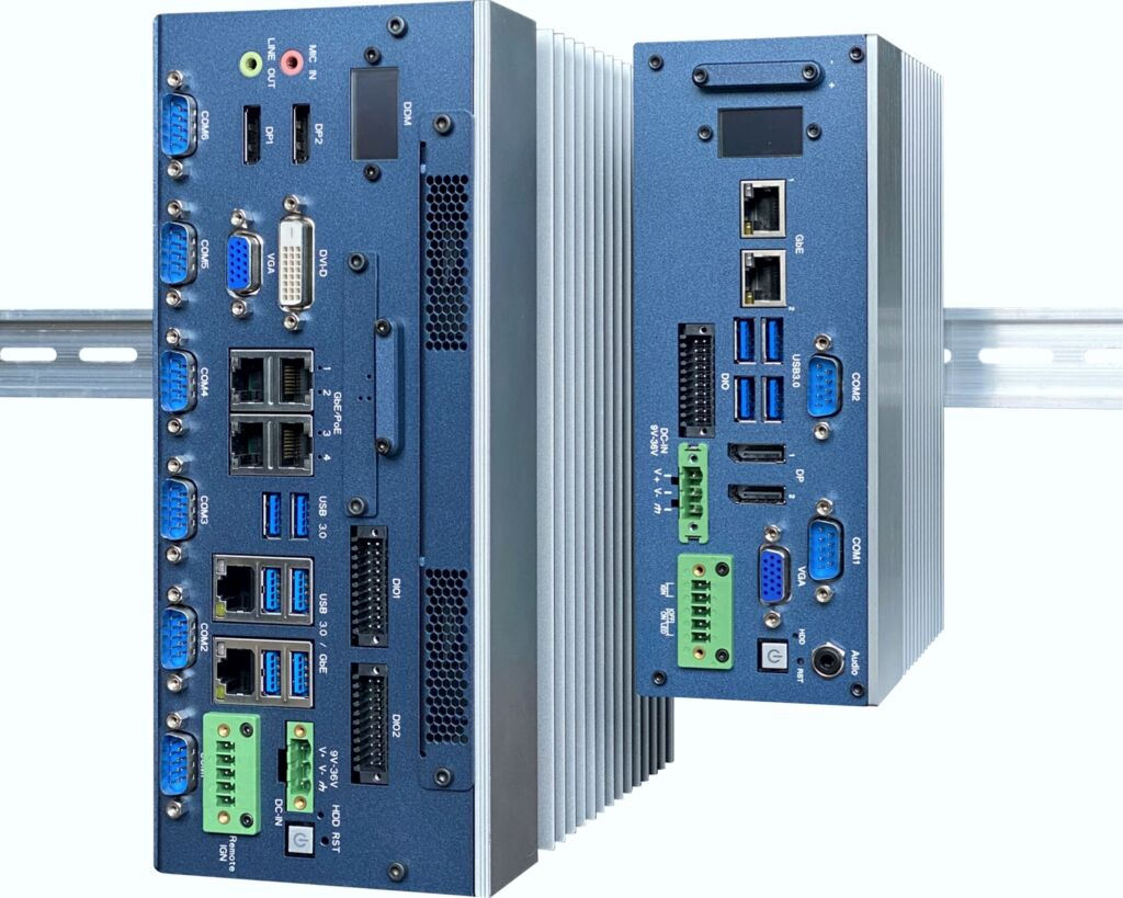 Die zwei neuen Industrierechner von Efco Electronics sind für die direkte Montage auf der Hutschiene ausgelegt. Sämtliche Anschlüsse befinden sich an der Gerätefront. Während die Highend-Version AIHD vor allem für Vision-Anwendungen konzipiert ist, zielt die kleinere Version AIMD auf HMIs und industrielle Automation. Beide Modelle bieten 16 digitale I/Os sowie einen Temperaturbereich von -25 bis +50°C, optional bis +70°C. Die Seitenteile der Gehäuse sind aus einer Aluminium-Legierung. Ausgestattet mit einem Weitbereichseingang und einem Überspannungsschutz, kommen die Eagle-Eye-IPCs mit Versorgungsspannungen von 9 bis 36VDC zurecht. Die Rechner sind auf USB3.0- und GigE-Schnittstellen mit PoE sowie RS458 ausgelegt. Per API werden diese direkt in die Hochsprachenprogrammierung mit einbezogen. An einem Display-Port können bis zu drei Monitore mit unterschiedlichen Bildinhalten betrieben werden.