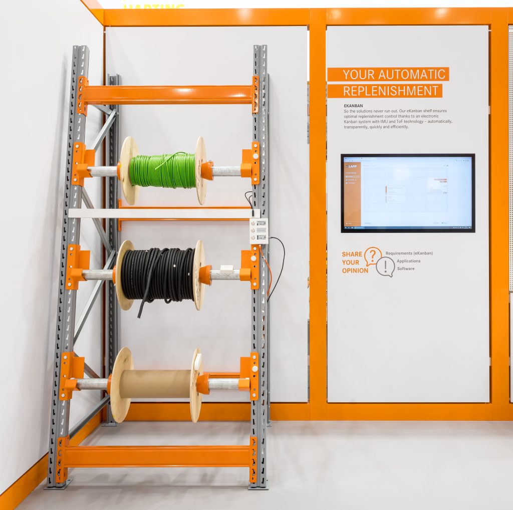 Die Lösung ließ sich Lapp daher patentieren. Sie besteht aus dem erwähnten Trägheits-Sensor an der Kabeltrommel oder der Achse und einem Display, das am Trommelregal angebracht ist. Die Hauptschlagader ist ein web-basiertes Dashboard, in dem nicht nur die Monteure, sondern auch weitere Personen wie Einkäufer bequem von ihrem Arbeitsplatz Zugriff auf alle Kabelbestände haben. Die Sensorik zeichnet sich durch eine lange Akkulaufzeit aus und lässt sich einfach an bestehende Kabelregale und -trommeln nachrüsten. Hinzu kommt eine Anbindung an digitale Systeme von Lapp. Schnittstellen zu ERP-Systemen soll das eKanban im Zuge der Entwicklung zur Serienreife später ebenfalls bieten – nach dem Motto: Industrie 4.0 für das Kabelbestands-Management. Damit soll eKanban schon bald das Kabelbestands-Management und die Prozesssicherheit revolutionieren, auch bei Regalen und Trommeln anderer Anbieter.