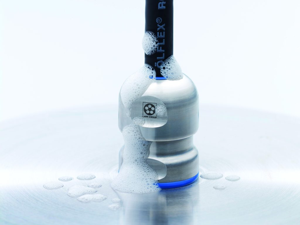 Die Kabelverschraubung Skintop Hygienic von U.I. Lapp erfüllt aufgrund ihrer Formgebung und des verwendeten Materials hohe Hygienestandards und ist nach EHEDG-Vorgaben zertifiziert. Sie besteht aus Edelstahl sowie FKM-Elastomer für die Dichtungen und besitzt keine Ecken und Kanten, an denen sich Lebensmittelreste festsetzen könnten. Die Schlauchverschraubung Silvyn Hygienic mit dem dazu gehörenden Schlauch ist ebenfalls für die Verwendung im Lebensmittelbereich geeignet und erfüllt die vorgegeben Standards.