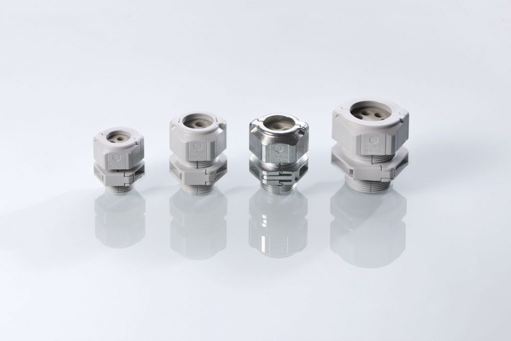 Die einzigartig teilbare UNI Split Gland gibt es aus Kunststoff in den Größen M20 bis M32 sowie als HD-Variante aus Metall in M25. – Bild: Pflitsch GmbH & Co. KG