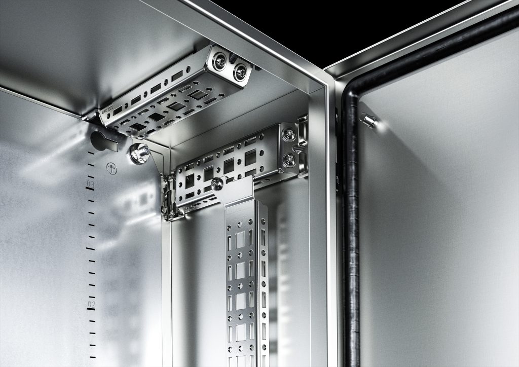 Innenausbauschiene und 25mm-Nocken: Systemausbau ohne Bohren – Bild: Rittal GmbH & Co. KG