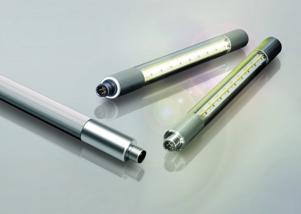 Die industrielle M12-LED-Leuchte mit Schutzklasse IP69K von Binder eignet sich sowohl zum Ausleuchten von Arbeitsräumen als auch zur Anzeige unterschiedlicher Betriebsmodi von Maschinen. Es gibt sie in drei Längen von 250, 358 und 412mm sowie entsprechenden Ausleuchtbereichen von 170, 270 bzw. 332mm. Die LED-Leuchten sind mit 60, 96 bzw. 114 LEDs ausgestattet. Bei einer Leistungsaufnahme von 5,7 bis 11,04W erreichen sie Lichtströme von 410 bis 746lm und Beleuchtungsstärken von 108 bis 198lx. Die Lichtfarbe beträgt 4.000K bei tageslichtähnlichem Spektrum, und der Farbwiedergabeindex liegt laut Datenblatt oberhalb von 90. Die symmetrische Anordnung der LEDs erzeugt ein homogenes Lichtbild und unterstützt das Vermeiden thermischer Hotspots. Bei Betriebstemperaturen zwischen -25 und +60°C ist die Lebensdauer der thermisch optimierten Leuchten mit 50.000h spezifiziert.