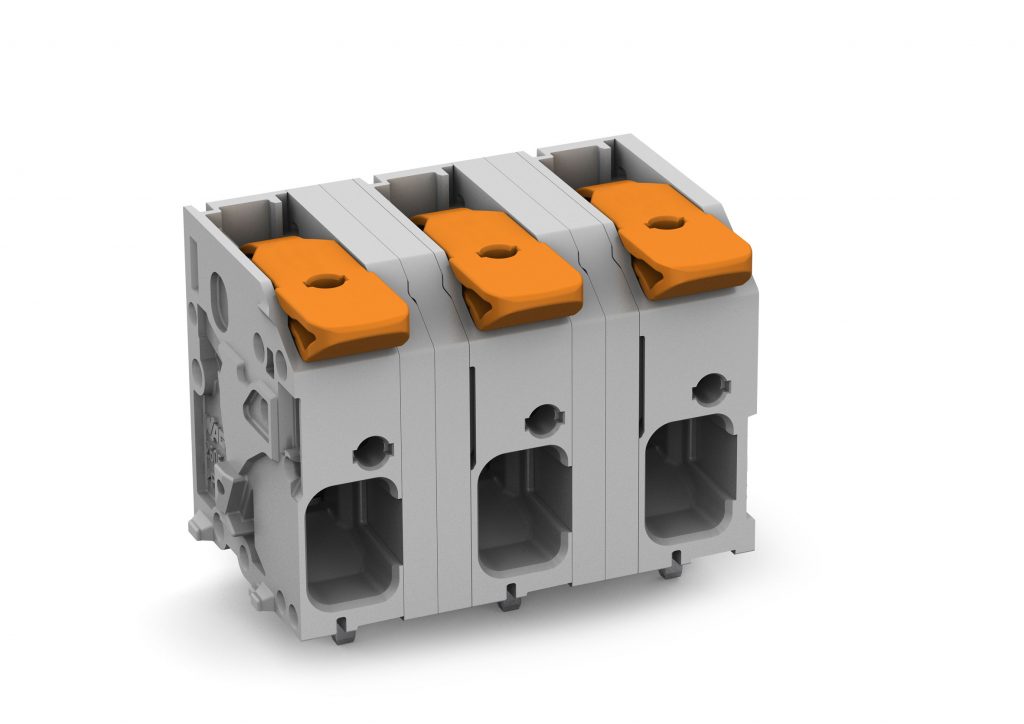 Mit der Erweiterung der Leiterplattenklemmen für Leistungselektronik ermöglicht es Wago, Leistung auf die Platine zu übertragen. Dabei sind die Klemmen der Serien 2606 und 2626 im Rastermaß 12,5mm und die der Serien 2616 und 2636 im Rastermaß 15mm ausgelegt. Außerdem können Ströme bis 101A gemäß IEC bzw. bis 85A gemäß UL übertragen werden. Die neuen Varianten sind für Spannungen bis 1000V gemäß IEC bzw. 600V gemäß UL ausgelegt. Ein weiteres, wesentliches Kriterium für die Auswahl der geeigneten Klemmen ist die Anschlusstechnik. Auch die neuen Leiterplattenklemmen sind mit dem Cage-Clamp-Anschluss über Push-in ausgestattet, der die schnelle und sichere Verdrahtung ermöglicht. Sie sind einfach und komfortabel bedienbar, da sie für direktes Stecken von eindrähtigen und feindrähtigen Leitern mit Aderendhülsen ausgelegt sind. Je nach Ausführung verfügt das Produktportfolio der Leiterplattenklemmen über einen großen Anschlussbereich von 0,2 bis 25mm².