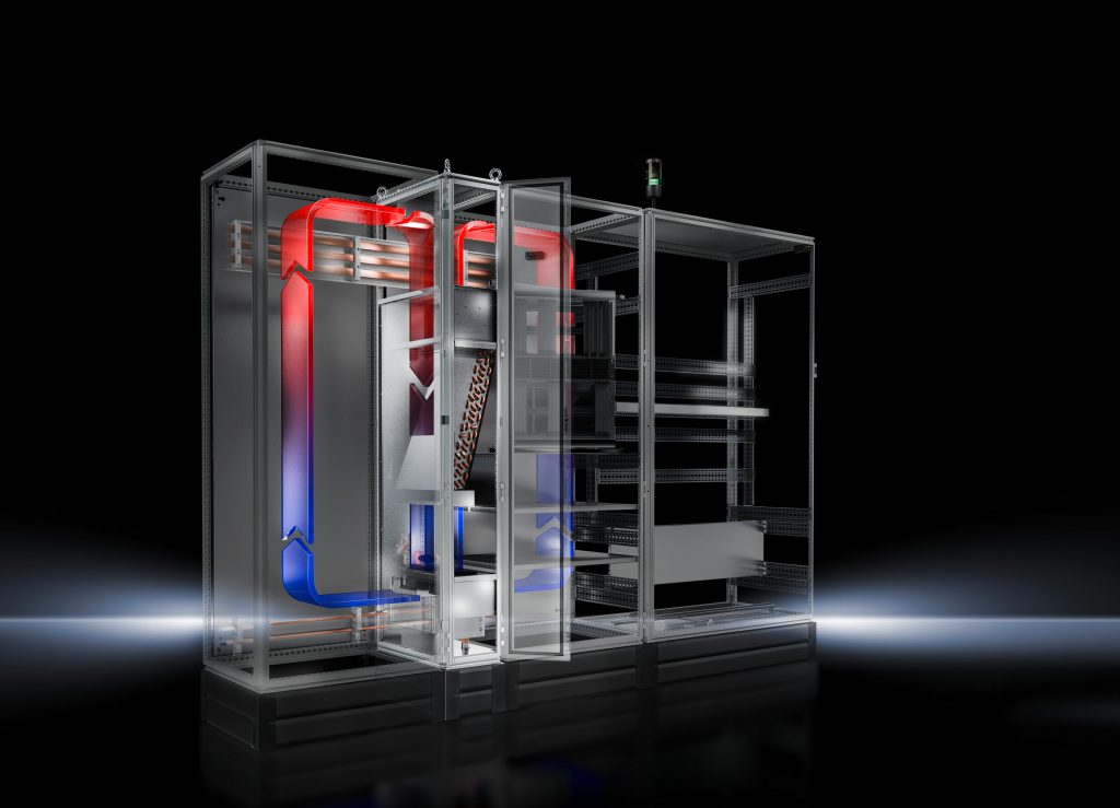 Das LCP Industrie (Liquid Cooling Package) von Rittal ist seit einigen Jahren als effizientes System zur flüssigkeitsbasierten Kühlung von Leistungselektronik in Schaltanlagen verfügbar. Jetzt bietet Rittal den Luft/Wasser-Wärmetauscher mit einigen Weiterentwicklungen und Vorteilen an. Steuerungs- und Schaltanlagenbauer sowie Anwender von Maschinen und Anlagen können von erhöhter Flexibilität und Energieeffizienz der Kühllösung profitieren. Sie eignet sich, um ganze Schaltschrankreihen effizient zu klimatisieren. Ist der Luft/Wasser-Wärmetauscher in der Mitte einer Schaltschrankreihe installiert, wird die Kühlluft nach beiden Seiten in die Schaltschränke eingeblasen. Mit einer Kühlleistung von bis zu 10kW lassen sich anspruchsvolle Klimatisierungsanforderungen wie die Kühlung von Frequenzumrichtern erfüllen. Der Klimaschrank mit einer Breite von 30cm kann dabei gut in das TS 8-Anreihschranksystem von Rittal integriert werden. Im dem weiterentwickelten LCP Industrie sind jetzt Aussparungen vorgesehen, durch die sich Sammelschienensysteme und Kabel führen lassen. Weitere Informationen hier.