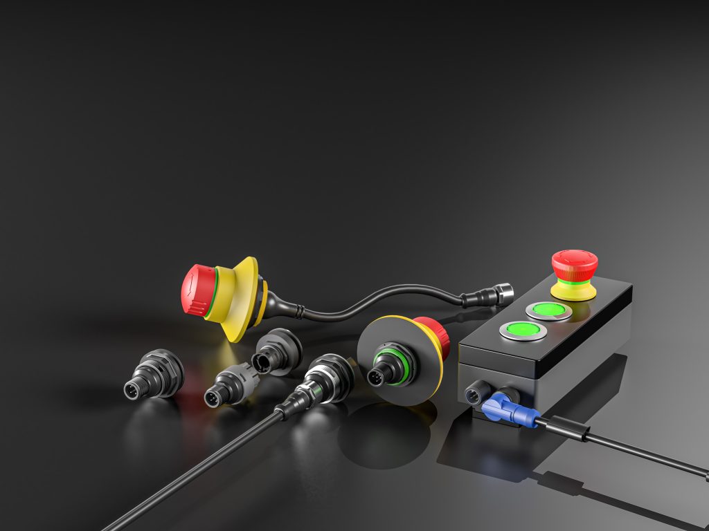 Bei Schlegel wurden frühzeitig die Potenziale von M12 gesehen. Deshalb hat bereits 2015 die M12-Verbindungstechnik bei uns Einzug gehalten. Mittlerweile sind viele Produktgruppen oder ganze Baureihen damit ausgestattet. Dank seine Vielfältigkeit kann der M12-Anschluss nahezu unverändert überall eingesetzt werden. Typische Verwendung bei Schlegel findet der M12-Anschluss bei Gehäusen, bei Produkten für das industrielle Netzwerk, bei Befehls- und Meldegeräten oder seit neuestem sogar bei den Kontaktelementen. Dies ermöglicht es dem Anwender Schalter oder Taster anderer Baureihen von Schlegel nachträglich mit einem M12-Anschluss auszustatten.