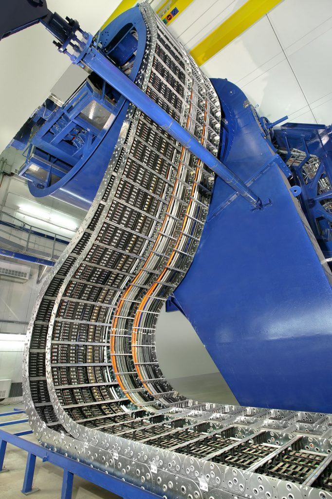 Mit Gründung von Kabelschlepp legt Dr.-Ing. Oskar Waldrich 1954 den Grundstein für eine neue Branche. Die Energieführungskette aus Stahl hält Einzug an Langfräsmaschinen, Krananlagen und vielen weiteren Anwendungen. Inzwischen hat das Unternehmen auch ein ausgedehntes Sortiment an Kunststoff- und Hybridketten. Dadurch bietet sich die Möglichkeit, stets eine passende Lösung für den jeweiligen Anwendungsfall zu finden. Bei extrem rauen Umgebungsbedingungen, sehr hohen Temperaturen oder hohen mechanischen Belastungen ist der Einsatz von Energieführungsketten mit Kettenbändern aus Stahl sinnvoll. Sie können sehr große freitragende Längen bei hohen Zuladungen durch Leitungen gewährleisten. Aufgrund des höheren Gewichts lassen sich Stahlketten zwar nur bis Verfahrgeschwindigkeiten von rund 2m/s einsetzen, allerdings spielt das in den Anwendungsgebieten Schwermaschinenbau, Stahlwerktechnik, Mining oder Tiefbohrtechnik meist eine untergeordnete Rolle. Die Robustheit und Haltbarkeit steht im Vordergrund. Bei Bedarf lassen sich durch Zusatzmaßnahmen Verfahrgeschwindigkeiten bis 4m/s realisieren.