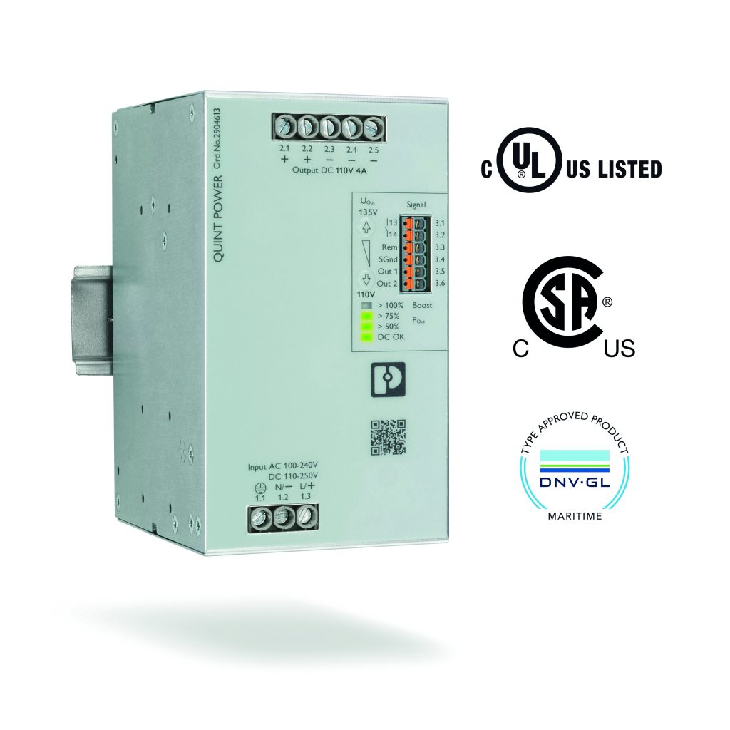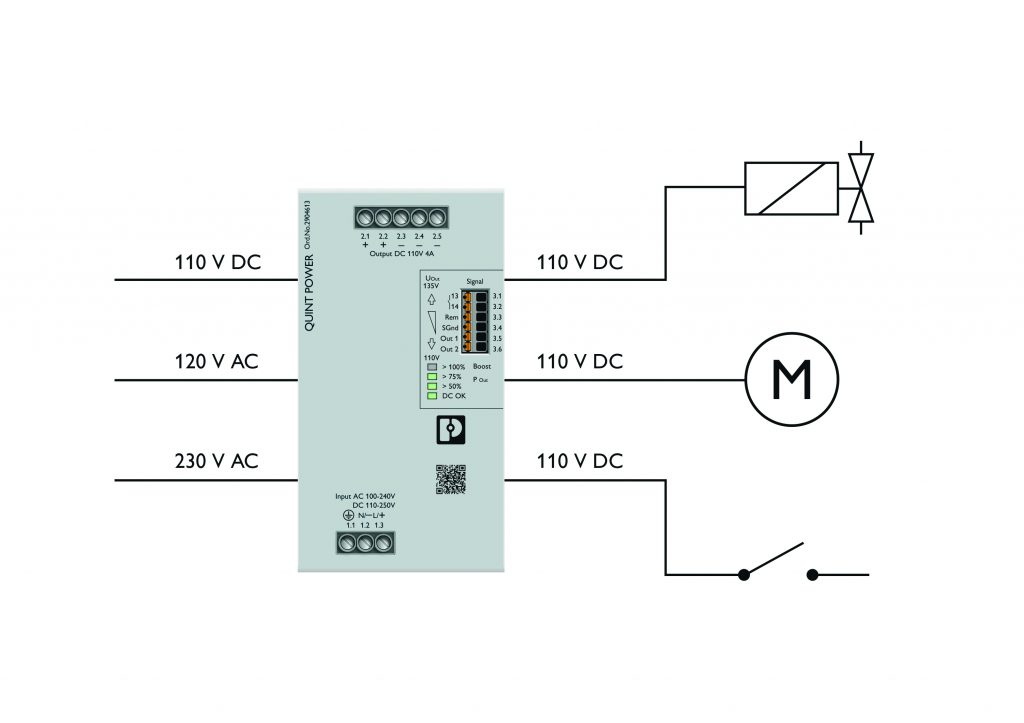 Mit einer neuen Stromversorgung aus der Baureihe Quint Power mit einer Ausgangsspannung von 110 bis 135VDC bietet Phoenix Contact nun eine leistungsstarke Lösung. Die neue Stromversorgung verfügt nicht nur über eine besondere Ausgangsspannung, sondern ist darüber hinaus vielfältig einsetzbar. Außerdem besitzt sie die bewährten Quint-Funktionen für eine hohe Anlagenverfügbarkeit.