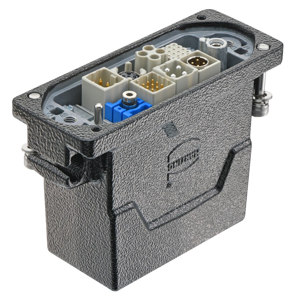 Harting stellt miniaturisierte Automatisierungskomponenten vor: Die modularen Schnittstellen Han-Modular Domino Module benötigen laut Hersteller nur die Hälfte des Bauraums bisheriger Standardlösungen. Aufgrund des halbierten Steckgesichts gegenüber dem bisherigen Standardmodell Han-Modular, finden doppelt so viele Übertragungsarten oder unterschiedliche Leistungs- und Spannungsniveaus Platz im Gehäuse einer Baugröße. Auch das Modell Han HPR Compact soll Anwendern Einsparmöglichkeiten bei Schnittstellen in rauer Industrieumgebung ermöglichen. Das Gehäuse ist robust und um bis zu 25% leichter und 20% kleiner als der bisherige Standard. Für Modifikationen stehen 3cm hohe Extender zur Verfügung, die eine flexible Skalierung erlauben.
