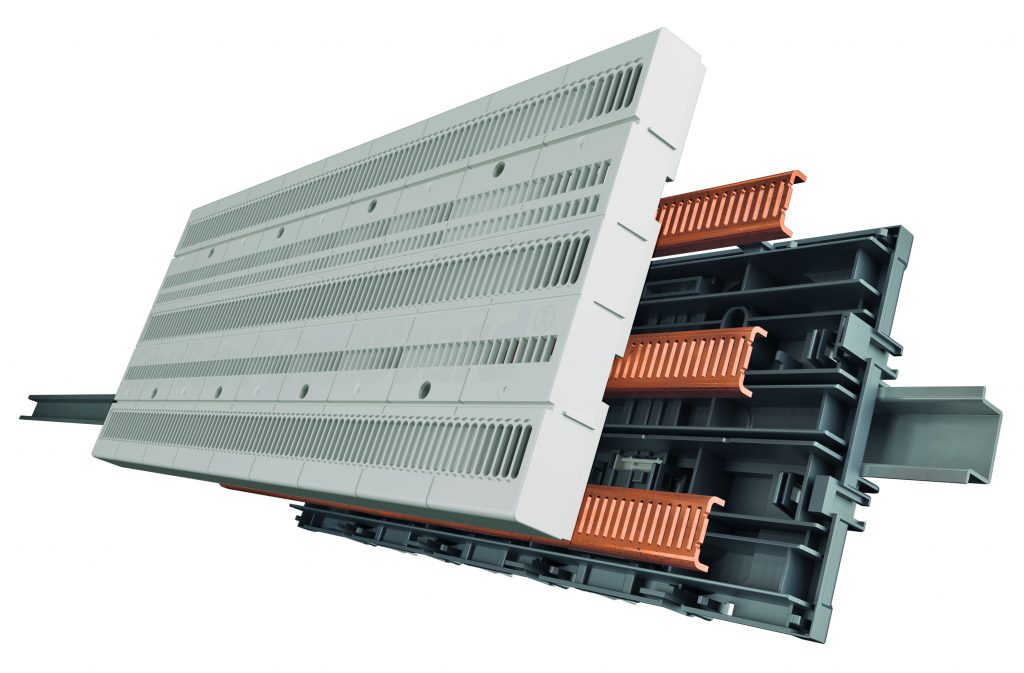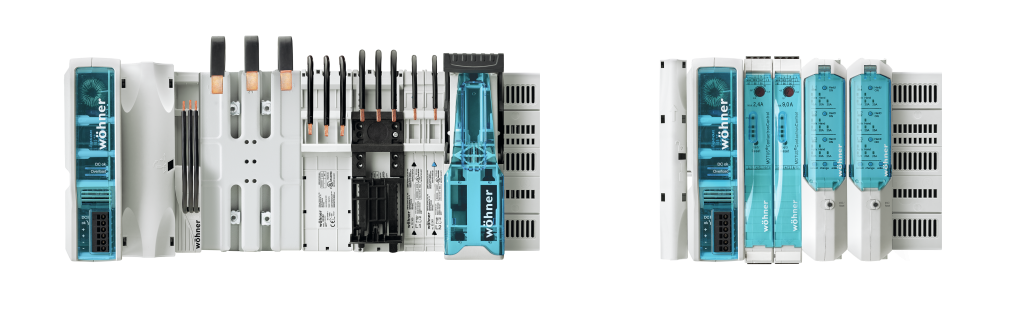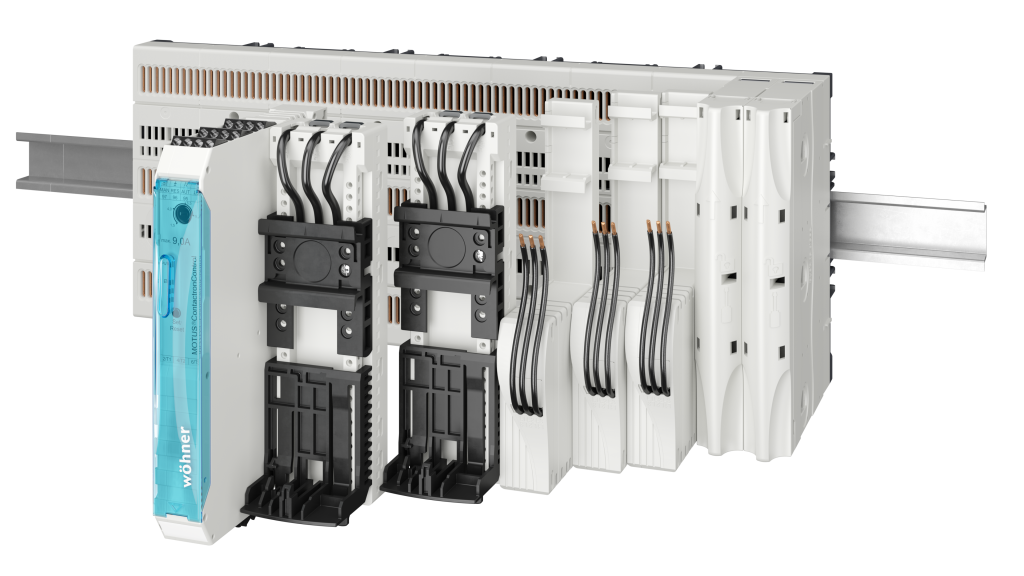 Mit dem CrossBoard hat Wöhner eine Systemlösung entwickelt, welche die Vorteile eines leistungsstarken Sammelschienensystems mit der traditionellen Verdrahtung auf der DIN-Tragschiene kombiniert. Das System verfügt über drei integrierte Sammelschienen im Abstand von 60mm mit einer Stromtragfähigkeit bis 125A, welche durch ein multifunktionales Gehäuse berührungsgeschützt abgedeckt werden. Mithilfe der geschlitzten CrossLink-Frontabdeckung erfolgt die mechanische Befestigung sowie die elektrische Kontaktierung der Komponenten werkzeuglos in einem Arbeitsgang. Dank seines besonderen Mechanismus auf der Rückseite wird das System gerade auf die DIN-Tragschiene aufgerastet ohne es zu kippen. Alternativ lässt es sich über vorhandene Öffnungen fest auf die Montageplatte aufschrauben. Das Board gibt es in zwei Baubreiten – 225 und 405mm. Mit beiden Größen sind modulare Lösungen bis 125A realisierbar bei nur 160mm Bauhöhe.