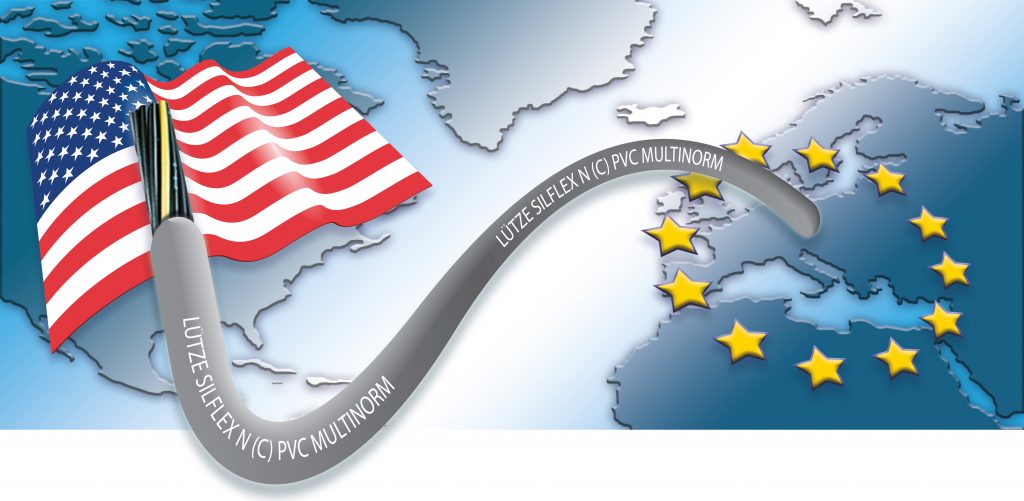 Neben geforderten Standards der UL508A-Konformität, wie Risikoanalysen, Qualitätsstandards, Regularien und Energieeffizienz, erfüllt die Multinormleitung von Lütze den Standard NFPA79. Eine 90°C/600V-Zulassung für Leistungsstromkreise vergrößert zudem den Einsatzbereich der Leitung. Der Einsatz der Multinormleitung bedeutet für den exportierenden Maschinenbauer, dass vorhandene Durchführungen, Kanäle, Platzvorgaben und Biegeradien der Maschine nicht erneut analysiert und verändert werden müssen. Die weiterhin identischen Dimensionen im Vergleich zu konventionellen Steuerleitungen erlauben es zudem, Leitungen dieses Typs auch für Europa zu verwenden. So lässt sich der Standardisierungsgrad und die Einsatztauglichkeit der Maschine deutlich erhöhen und die Leitungsvielfalt reduzieren. Zusammengefasst ist die eingesetzte Leitung für die USA bzw. Nordamerika tauglich und verfügt über notwendige Zulassungen und einen geringen Leitungsdurchmesser. Das Lieferprogramm umfasst alle gängigen Konstruktionen und Querschnitte.
