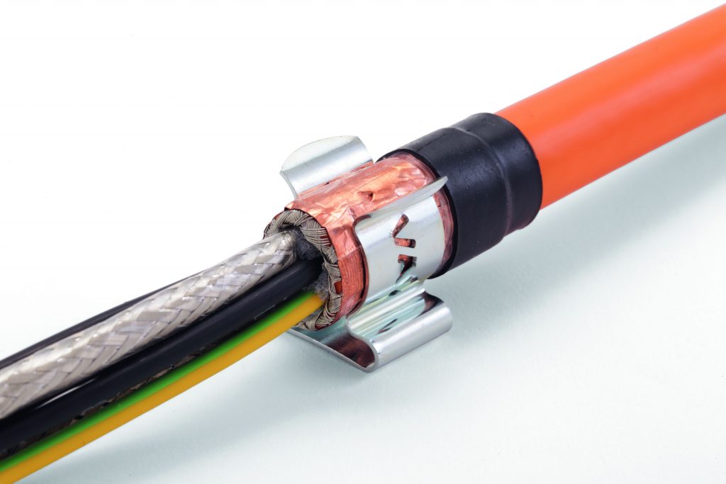Hebotec hat pünktlich zur SPS IPC Drives ein Produkt veröffentlicht: Die Schirmklammer HSKZ 11 – 18 leitet Störströme durch ihren großflächigen Kontakt zuverlässig ab. Zudem sorgt die Konstruktion für eine dauerhafte Zugentlastung. Sie ist eigens für die Bestückung mit konfektionierten Kabeln entwickelt worden, bei denen der Kabelschirm über den -mantel zurückgeschlagen und mit einem Schrumpfschlauch fixiert ist und der frei liegende Schirm mit einem leitenden Metallband umwickelt wurde. Die Klammer leitet sehr gut ab und umfasst aufgrund ihrer Form, der dickeren Materialstärke und der hohen Klemmkraft Leitungen verlässlich. Dabei erreicht sie mit 14mm Breite eine größere Kontaktfläche als herkömmliche Schirmklammern. Sie eignet sich für Kabel zwischen 11 und 18mm Durchmesser und besteht aus verzinktem Federstahl. Zusätzlich entlasten die Klemmspitzen das Kabel: Sechs Klemmspitzen – vier in Zugrichtung und zwei in die Gegenrichtung – fixieren die Leistungen fest.