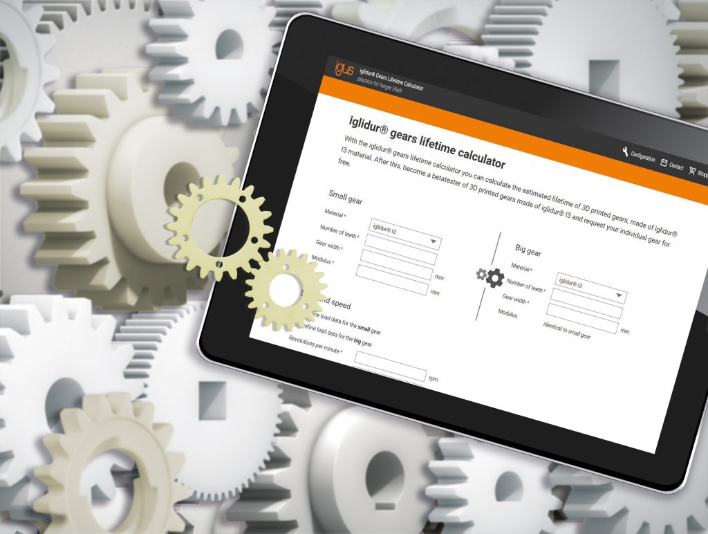 Wie lange hält mein Zahnrad? Um diese Frage dem Anwender zu beantworten, hat Igus für seine 3D-gedruckten Zahnräder aus SLS-Hochleistungskunststoff Iglidur 13 den Zahnrad-Lebensdauerrechner entwickelt. Mit dem Online-Tool erhält der Nutzer in wenigen Sekunden eine konkrete Aussage über die Lebensdauer seines additiv gefertigten Verschleißteils. Im ersten Schritt muss der Nutzer die Zähnezahl, die Breite und das Zahnmodul der Zahnradpaarung eingeben. Im zweiten Schritt fragt das Tool nach Geschwindigkeit und dem Drehmoment des großen und kleinen Zahnrades, abhängig von welchem Zahnrad die Werte vorliegen. Im letzten Schritt gilt es die Einschaltdauer des gedruckten Zahnrades, die Arbeitsweise, die Umgebungstemperatur und den Sicherheitsfaktor zu bestimmten. Auf Basis dieser Daten kann die Lebensdauer ermittelt werden und eine Wartung ist vorab planbar. Zahnrad-Lebensdauerrechner lässt sich unter www.igus.de kostenlos nutzen.