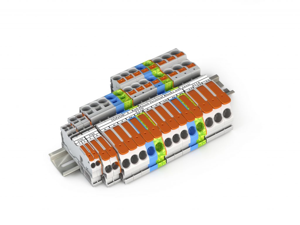 Für den Netzanschluss von Maschinen und Anlagen hat Wago die Reihenklemmen Topjob S mit intuitiver Hebelanschlusstechnik entwickelt. Die Klemmen sind als Zwei- und Dreileiter-Ausführungen verfügbar und wurden jetzt um den Nennquerschnitt 10mm² erweitert. Für den externen Anschluss sind die Reihenklemmen zum Öffnen und Schließen der Klemmstelle mit einem Hebel ausgestattet. Für die interne Anschlussseite stehen wahlweise Drücker oder Betätigungsöffnungen zur Wahl. Die Betätigung der Klemme erfolgt intuitiv und werkzeuglos per Hand.