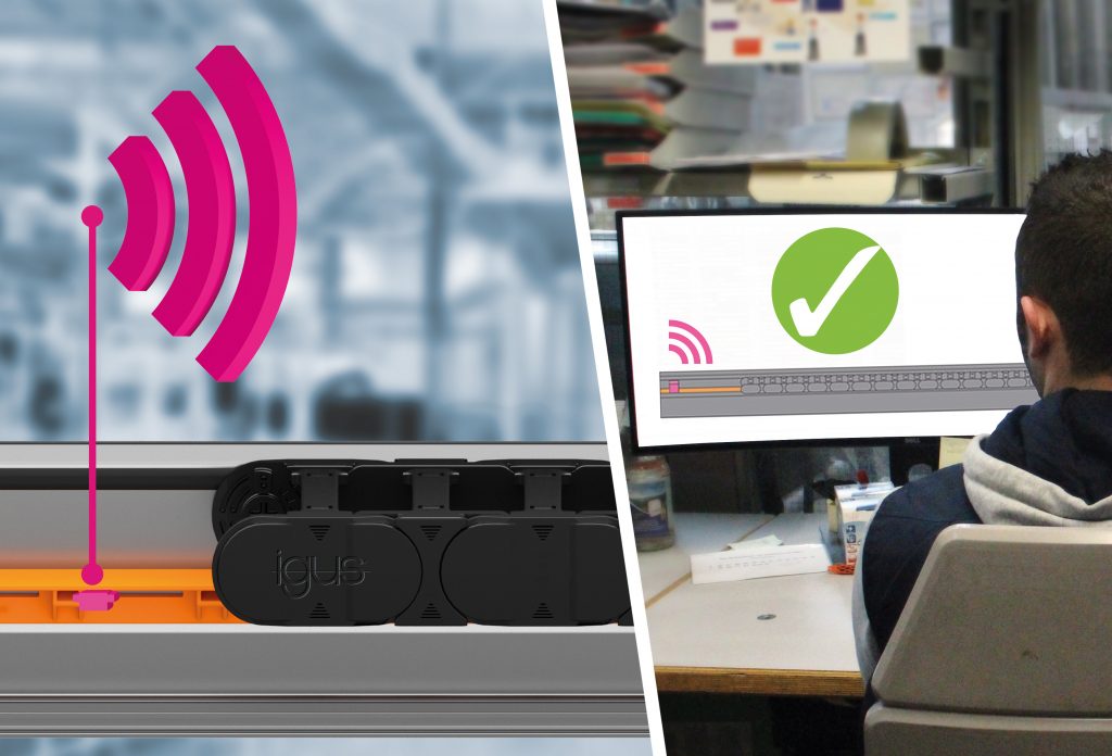 Igus hat speziell für hohe Geschwindigkeiten von über 5m/s einen hochabriebfesten Hochleistungskunststoff entwickelt. Die verschleißfeste Schiene ist so konzipiert, dass sie sich schonend gegenüber der Energiekette verhält. Der Sensor EC.T des Unternehmens überwacht permanent den Zustand der Gleitschiene. Er ist direkt in die neue High-Speed-Schiene vergossen, funktioniert drahtlos und ist batteriebetrieben. In regelmäßigen Abständen sendet er ein Signal über seinen Zustand an das Kommunikationsmodul Icom. Das bereitet die Daten aller Isense-Sensoren auf und bietet die Möglichkeit der Integration in das gewünschte Instandhaltungs-Tool. Mittels Realitätsabgleich der Lebensdaueralgorithmen kann die Anzahl der Tage bis zur nächsten Wartung über das Tool ausgegeben werden. Zum Einsatz kommen die neuen Gleitschienen z.B. an Gantries im Werkzeugmaschinenbau oder auch an der siebten Achse von Industrierobotern.
