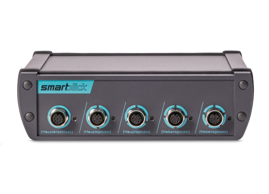 Die Sensorik zeigt differenziert an, ob und wann die Hauptspindel der Maschine steht, mit welcher Drehzahl gerade gearbeitet wird und welche Leistung die Spindel aktuell abruft. Dank dieses simplen Prinzips funktioniert Smartblick bei Maschinen jeden Bautyps und Alters – solange ihre Motoren die Polpaarzahl 2 besitzen und ihre Synchrondrehzahl 18 000 Umdrehungen pro Minute sowie einen maximalen Strom von ±100A AC/DC nicht übersteigen.