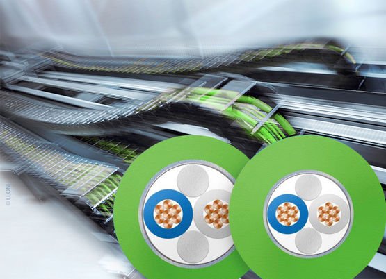 Die zwei neuen Single-Pair-Ethernet-Leitungen von Leoni eignen sich für den Einsatz in Schleppketten- und Torsionsanwendungen. – Bild: Leoni AG