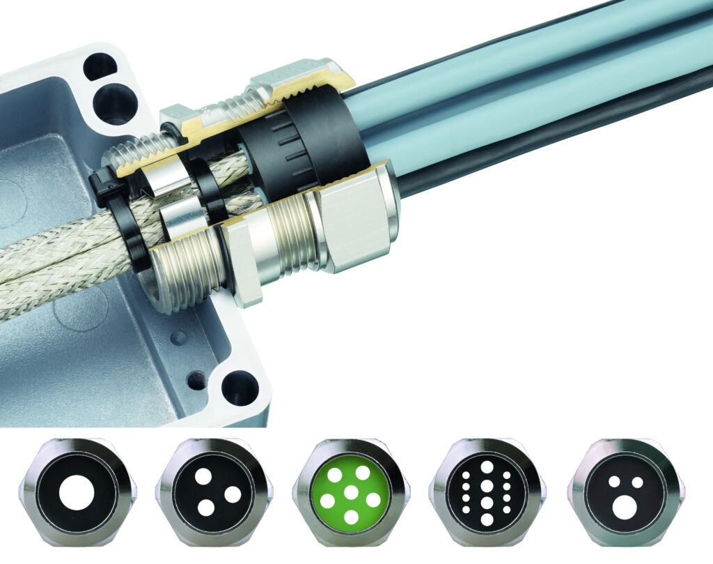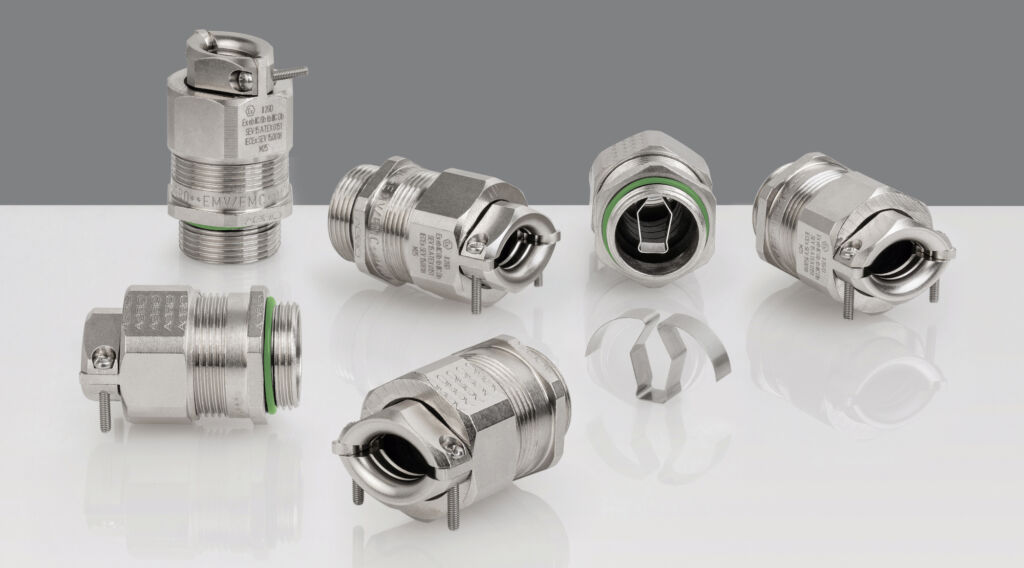 Als Spezialist für Kabelverbindungen und Installationskomponenten verfügt die schweizerische Firma Agro über ein breites Produktspektrum an EMV-Kabelverschraubungen. Im Rahmen seiner Progress-Produktfamilie hat der zur Kaiser Group gehörende Hersteller Verbindungssysteme mit sechs verschiedenen Kontaktierungsvarianten entwickelt, die sich durch leichte Montage, eine niedrige Transferimpedanz und hohe Strombelastbarkeit auszeichnen. Mit unterschiedlichen Schirmabgriffen per Kontaktfeder,