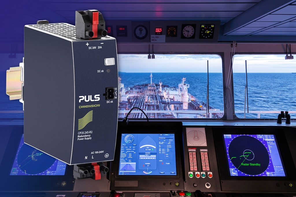 Das 24V/20A-Hutschienen-Netzteil CP20.245-R2 wurde für den On- und Offshore-Einsatz in der Schifffahrt und Prozessindustrie entwickelt. Die marinekonforme Stromversorgung erfüllt die Anforderungen der EMV-Klasse B ohne externe Filter und kann direkt auf der Brücke und an Deck eingesetzt werden. Das Gerät stellt die volle Ausgangsleistung von 480W auch bei schwankenden Umgebungstemperaturen zwischen -40 und +60°C bereit. Das Zulassungspaket umfasst u.a. Marine DNV, Marine ABS und Atex. Durch einen integrierten Entkopplungs-Metall-Oxid-Halbleiter-Feldeffekttransistor ist eine sichere 1+1- und n+1-Redundanz zwischen den Stromversorgungen möglich, die im Störfall für die Verfügbarkeit aller notwendigen Systeme sorgt. Das zusätzliche Redundanzmodul, das hierfür normalerweise benötigt wird, kann eingespart werden. Die Steckverbinder wurden so gewählt, dass ein Gerätetausch auch im laufenden Betrieb möglich ist. Der Wirkungsgrad von 95,2% sorgt für geringe Leistungsverluste und wenig Abwärme.