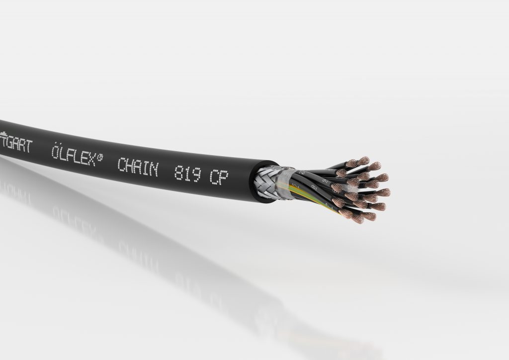 Die hochflexiblen Steuerleitungen Ölflex Chain 819 P und die geschirmte Variante Ölflex Chain 819 CP haben einen robusten und besonders ölbeständigen Außenmantel aus einer neuartigen PU-Spezialmischung. Die Leitungen der Basic-Line Performanceklasse eignen sich für bis zu 5Mio. Wechselbiegezyklen bei moderaten Verfahrwegen oder Beschleunigungen, der abriebfeste Mantel sorgt für lange Wartungsintervalle der Schleppkette. Die Leitungen ersetzen die beiden bisherigen Basic-Line Schleppkettenleitungen Ölflex Chain 808 P und Ölflex Chain 808 CP. Ein weiteres Plus des neuen Mantelmaterials ist die verbesserte Flammwidrigkeit. Die ist notwendig für eine Zertifizierung nach UL/cUL AWM. Damit sind die Leitungen sowohl in Nordamerika als auch in Europa zugelassen, sowohl für Spannungen mit 600 als auch 1.000V. Das freut besonders exportorientierte Maschinenbauer, weil sie ihre Lagerhaltung reduzieren können.