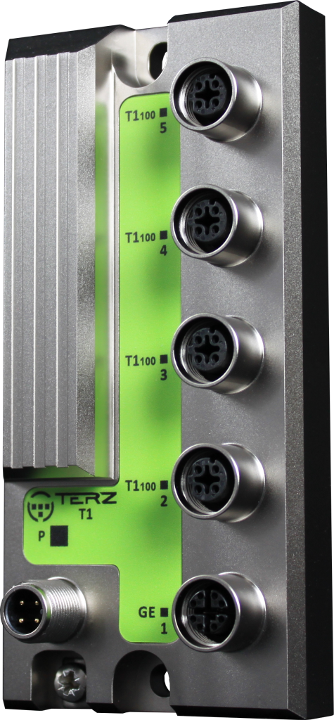 Mit dem T1-XS41 Single-Pair-Ethernet-Switch ist eine schaltschranklose Vernetzung direkt im Feld mit nur einem Adernpaar möglich. Der Switch mit vibrationssicherer M12-Anschlusstechnik auf fünf Ports wurde für den Einsatz in rauen industriellen Umgebungen außerhalb des Schaltschranks mit einem erweiterten Temperaturbereich von -40 bis +70°C entwickelt. Das robuste IP65/67-Metallgehäuse ist staubdicht und schützt gegen das Eindringen von Wasser. Die Daten der vier D-kodierten SPE-Master-Ports werden über einen X-kodierten M12-Standard-Ethernet-Port mit GBit-Geschwindigkeit weiterübertragen. Die Nachrüstung bestehender Applikationen, bei denen der Bauraum im Schaltschrank erschöpft ist, ist ebenso möglich wie der Aufbau von Neuinstallationen mit Fokus auf Dezentralisierung der Komponenten.