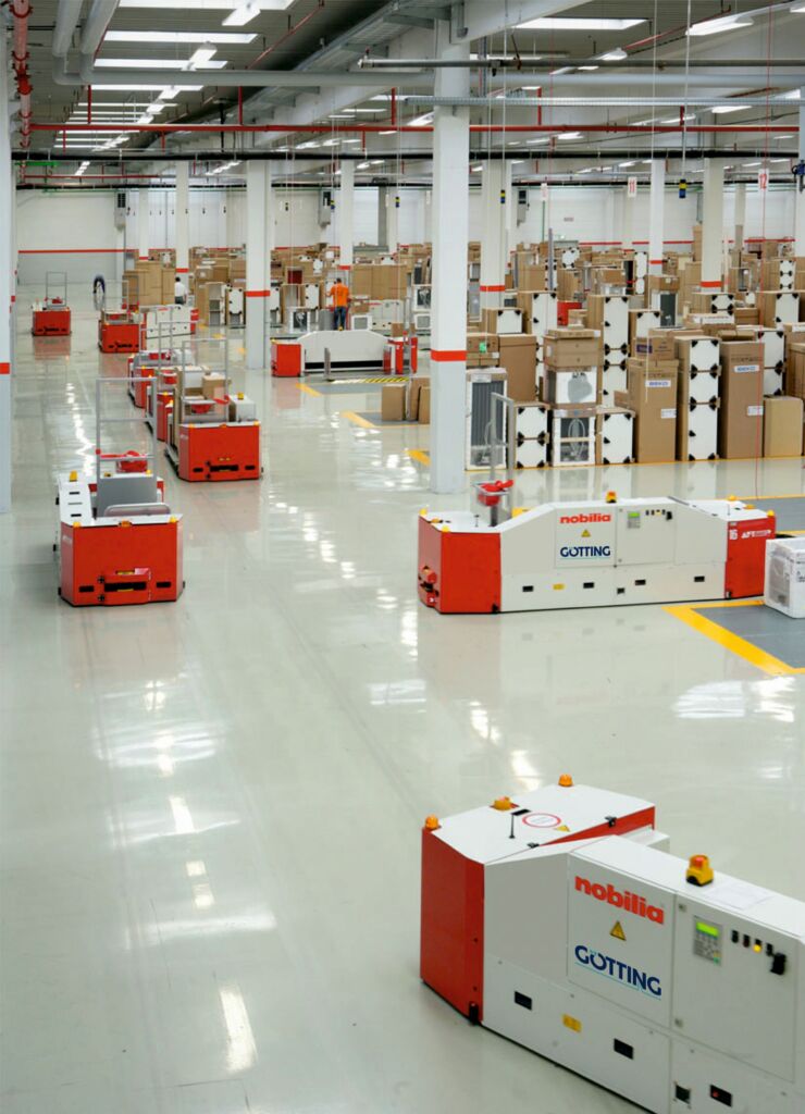 Neben der FTS-Steuerung bewährte sich EchoRing bei Götting auch im Einsatz mit fahrerlosen Transportfahrzeugen, insbesondere in der infrastrukturlosen Kommunikation von Fahrzeugen bei Annäherung an Kreuzungen, Einmündungen oder sonstigen Entscheidungspunkten. Üblicherweise erhalten fahrerlose Transportfahrzeuge, auch AGV genannt (Automated Guided Vehicles), ihre Fahraufträge über WiFi oder ein Campus-Netz von einer zentralen Leitsteuerung, die sich auch um die Verkehrsregelung an den kritischen Stellen kümmert, um Stockungen oder gar Kollisionen zu vermeiden. Bei einer Störung des Kommunikationssystems bleiben die Fahrzeuge in der Regel stehen, was beispielsweise an Kreuzungen gegenseitige Blockaden verursachen kann. Zur Vermeidung solcher Störungen oder zur Entlastung des zentralen Kommunikationsnetzes können die Fahrzeuge mit dem EchoRing-System als zuverlässiges redundantes System ausgerüstet werden. An neuralgischen Punkten tauschen die fahrerlosen Transportfahrzeuge dann direkt untereinander Informationen aus und regeln die Vorfahrt autonom. Aktuelle Transportaufträge können so ohne Stillstände abgeschlossen und der Betrieb aufrechterhalten werden. In der Intralogistik ist die Maximierung der Lagerkapazität entscheidend. Kompakte Sensoren spielen dabei eine Schlüsselrolle: Höchste Leistung in kompakter Bauform schafft mehr Platz für die Ware, denn die Technik macht sich klein. ‣ weiterlesen
