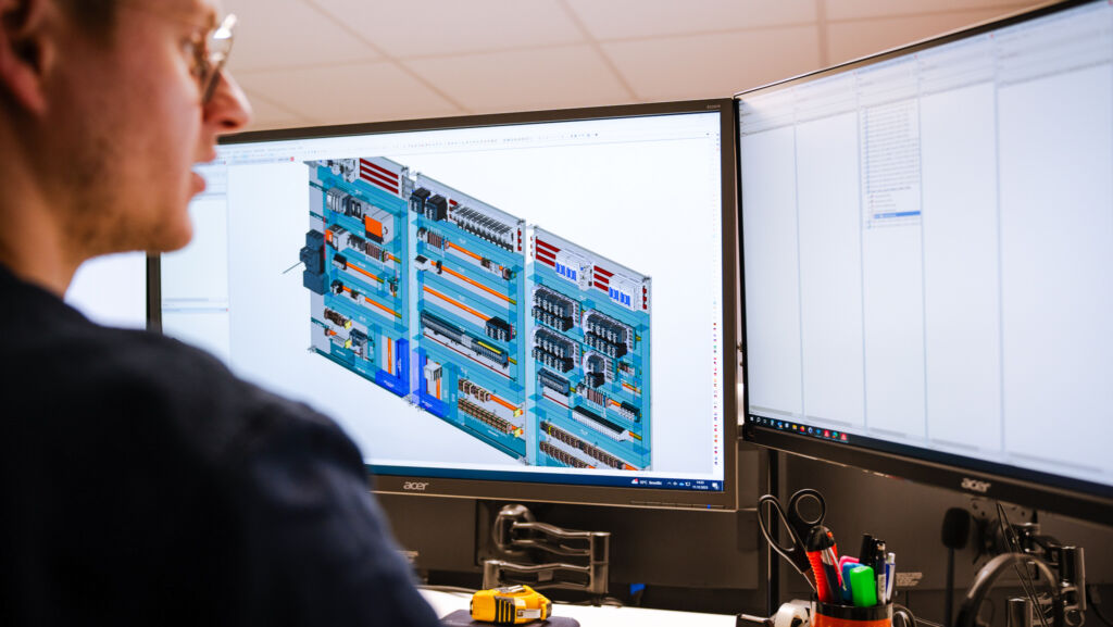 Beim Elektro-Engineering arbeitet Röring mittlerweile im zehnten Jahr mit der Eplan Plattform. „Unser Ziel ist es, mit smarten Lösungen große Wirkung erzielen‘ und das gelingt uns auch,“ sagt Aagten. Mit Eplan Electric P8 erstellen die Elektrokonstrukteure – meist auf der Basis von Step-Daten, die der Kunde bereitstellt – allpolige und auch einpolige Schaltpläne. Dabei nutzen sie das Data Portal und auch im eigenen Hause entwickelte Standards und Makros. Die 3D-Schaltschrankplanung erfolgt ebenso auf der Basis von Eplan Pro Panel wie das Routing, die Bündelung und die Konfektionierung der Leitungen. Und wenn das Engineering abgeschlossen wird, werden die Eplan-Daten weiter genutzt. Elektrokonstrukteur Kevin Korte: „Den fertigen Schaltplan laden wir über eView in die Eplan Cloud. Die Kollegen in der Werkstatt arbeiten auf dieser Basis, und dank Red- und Greenlining können alle Beteiligten immer auf den jeweils aktuellen Datenstand zugreifen.“