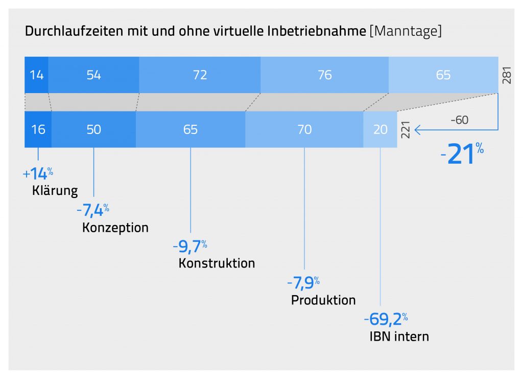 - Vorverlagerung der SPS-Programmierung, was zu einer Verkürzung der Durchlaufzeit um 70 Prozent bedeutet