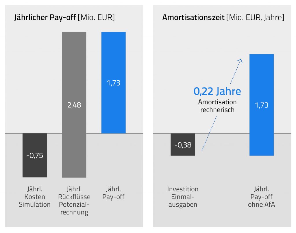 - Schnelle Umrüstung auf neue Produkte vorab am virtuellen Modell getestet und schnell im laufenden Betrieb umgesetzt
