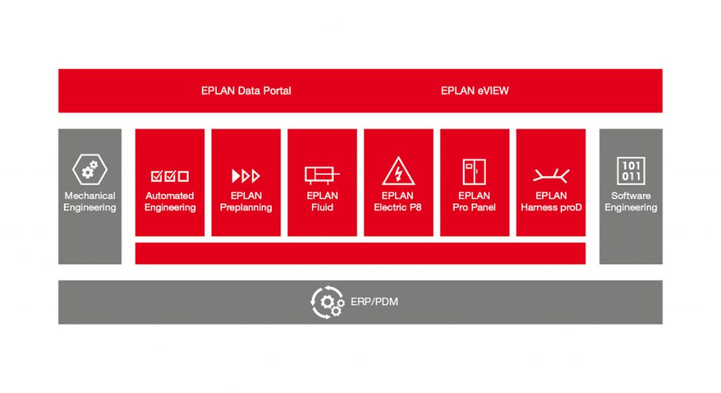 Die neue Cloud-Plattform Eplan ePulse soll all diese Szenarien unterstützen und fördern. Sind die oben erwähnten Projektdaten dort gespeichert, steht einem Zugriff zu jeder Zeit und von jedem Ort nichts im Wege. Entsprechend schafft Eplan auch die Möglichkeiten, um die in den verwendeten Applikationen erzeugten Daten per Mausklick in die Cloud zu transferieren. Hierzu wird das Projekt über eView mit den erforderlichen Partnern zu Kollaborationszwecken geteilt. Unternehmen werden mit ihren Kunden und Lieferanten vernetzt, um so den Austausch von Daten einfach und sicher zu ermöglichen. Das Projekt ist somit das zentrale, digitale Modell einer Automatisierungslösung, das mit verschiedenen Applikationen wie Eplan Electric P8, Pro Panel und Fluid aufgebaut wird und als Single Source of Truth verfügbar ist. Das Projekt versorgt schlussendlich die weiterführenden Prozesse mit den notwendigen Daten.