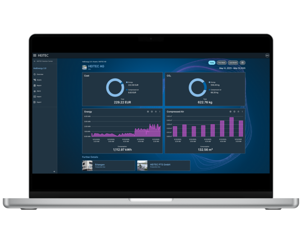 Die Heitec Energy App bietet eine Lösung für das Energiemanagement in der industriellen Fertigung. Förderfähig nach ISO 50001 gemäß BAFA-Richtlinien für Energiemanagementsoftware sowie der Berichterstattung gemäß DIN EN 16247, ermöglicht sie präzise Evaluierungen, automatisierte Reports und die Erfüllung gesetzlicher Anforderungen. Dank ihres responsiven Designs ist die App auf allen Endgeräten intuitiv bedienbar und liefert in Echtzeit genaue Auswertungen auf Maschinen-, Anlagen