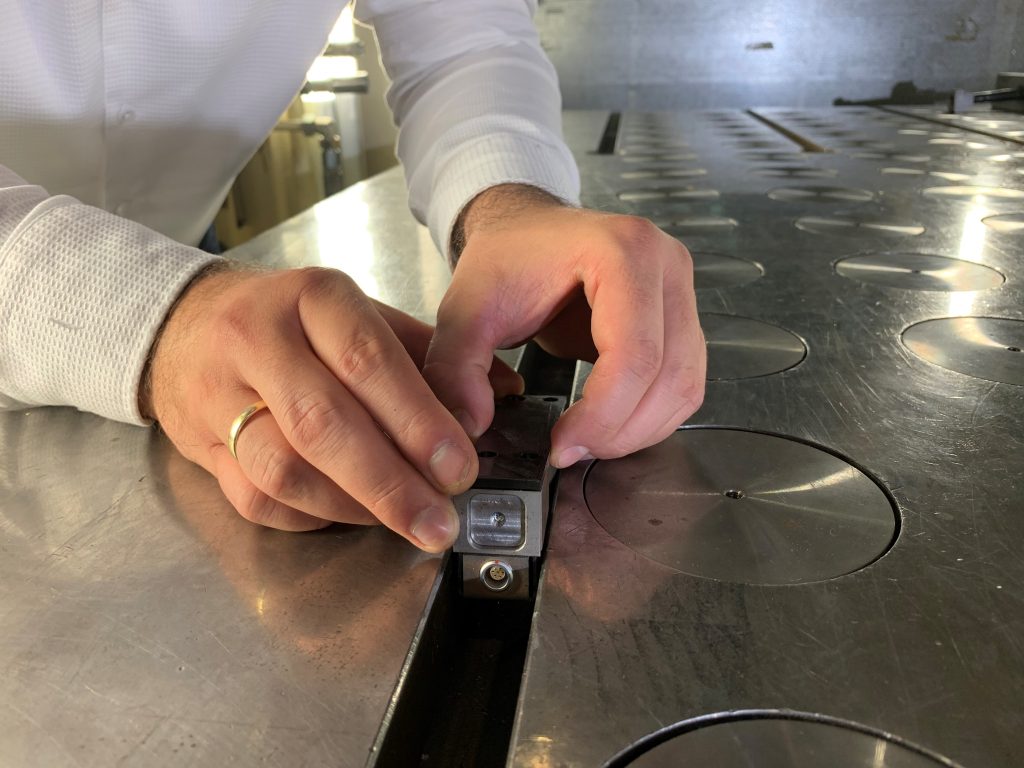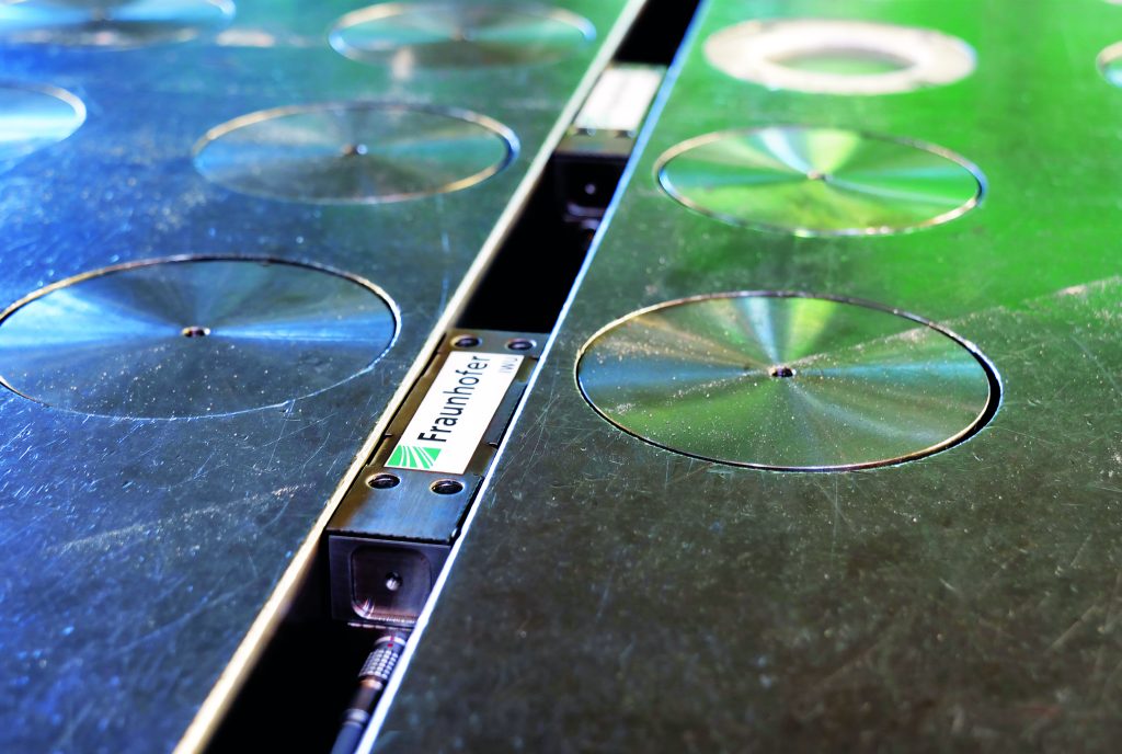 Eine Basis für solche Retrofit-Ansätze bildet der intelligente Nutenstein SmartNotch des Fraunhofer CCIT. Dabei handelt es sich um einen Sensor, der direkt in die standardisierten T-Nuten einer Presse eingebaut wird und die angelegte Kraft am Werkstück misst. Der Nutenstein kommt also direkt am Ort des Umformprozesses zum Einsatz, ohne den bestehenden Arbeitsablauf zu beeinträchtigen. Die Sensorik wird in mehreren Größen entwickelt und kann somit in großen als auch in kleinen Nuten installiert werden.