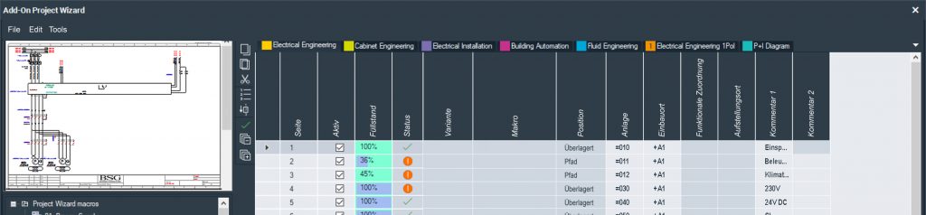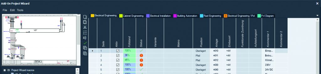 Die Abwicklung eines typischen Auftrags bei BSG sieht etwa wie folgt aus: Die Auftraggeber, in der Regel Anlagen- oder Maschinenbauer, gelegentlich auch Endkunden selbst, reichen die Verfahrenspläne oder CAD-Zeichnungen der Maschinenmechanik oder Anlage bei BSG ein. Auf Grundlage des vorliegenden Knowhows wird in einem ersten Schritt mithilfe des ERP-Systems das Angebot erstellt. Nach Auftragserteilung werden alle im Angebot enthaltenen und relevanten Positionen über Onetool an die WSCAD Suite für die komplette elektrotechnische Konstruktion übergeben, inklusive einer vollständigen und normenkonformen Dokumentation. Bei Onetool handelt es sich um einen von BSG selbst geschriebenen Konfigurator. „In diesem Zusammenhang war es für uns wichtig, dass wir vom ECAD-Lieferanten eine entsprechende Schnittstelle bekommen haben“, betont Drechsler. „Bei WSCAD haben wir mit dem Project Wizard genau die Schnittstelle bekommen, mit der wir unsere selbst entwickelte Lösung an unser ERP-System andocken konnten.“