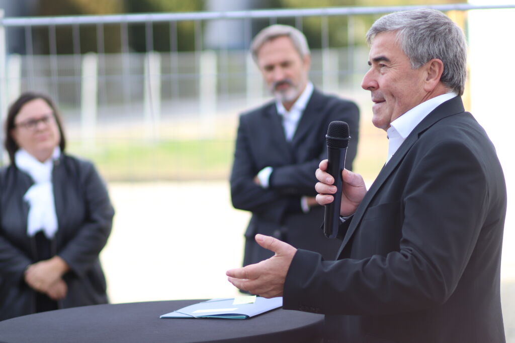 ABB hat mit dem Bau einer neuen Halle am Standort Minden begonnen. Zum Spatenstich fanden sich Markus Ochsner (m.), Vorstandsvorsitzender von ABB, und Edgar Keller (r.), Leiter der Division Traction, ein. Die neue 2.500m² große Produktionshalle für den Geschäftsbereich Traction soll Mitte 2022 in Betrieb genommen werden. Am Standort Minden produziert ABB seit dem Jahr 2013 Traktionsumrichter verschiedener Leistungsklassen und Bordnetzumrichter für die Bahnindustrie.