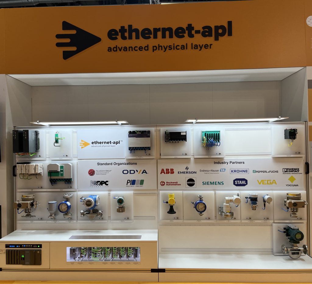 Nach fast vier Jahren Zusammenarbeit zwischen der FieldComm Group, der ODVA, der OPC Foundation und der Profibus Nutzerorganisation sowie mit Unterstützung von zwölf Projektpartnern aus der Industrie, wurde auf der diesjährigen Achema der erfolgreiche Abschluss des APL-Projekts verkündet. Das Ergebnis , Ethernet-APL, ist ein verfügbarer 10MBit-Standard für einen neuen eigensicheren – für zweiadrige Kabel ausgelegten – Physical Layer. Erste Geräte waren am Gemeinschaftsstand der Organisationen auf der Messe in Frankfurt zu sehen.