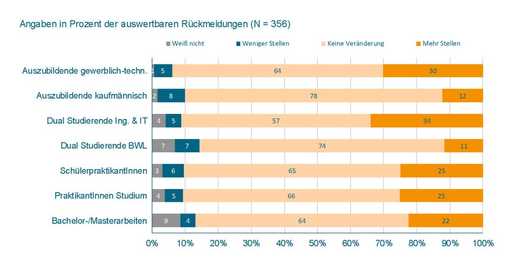 Zur Sicherung des Fachkräftenachwuchses setzen die Maschinenbaufirmen weiterhin auf Ausbildung und duales Studium. Die Personalverantwortlichen der Unternehmen, die sich in diesen Bereichen engagieren, planen laut einer VDMA-Umfrage mit einem weiteren Ausbau des Angebots von dualen Studienplätzen in den Ingenieurwissenschaften und der Informatik sowie von gewerblich-technischen Ausbildungsplätzen. 34% der Personalverantwortlichen wollen künftig mehr duale Studienplätze im technischen Bereich anbieten. Mit mehr technisch-gewerblichen Ausbildungsplätzen planen 30% der Befragten.