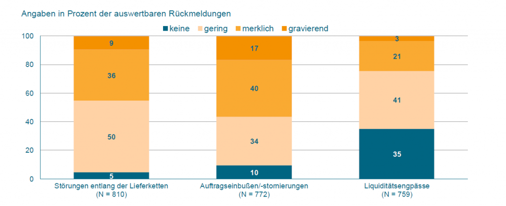 Bei der ersten Umfrage Mitte März gaben 60 Prozent an, dass sie Beeinträchtigungen der Lieferketten spüren, allerdings stuften sie die Auswirkungen noch überwiegend als gering bis mittel ein. Zwei Wochen später stieg der Anteil der Unternehmen, deren Betriebsablauf beeinträchtigt ist, auf 84 Prozent. Fast jeder zweite betroffene Betrieb (45 Prozent) leidet unter ‚gravierenden‘ oder ‚merklichen‘ Störungen entlang der Lieferketten. Lediglich fünf Prozent blieben bisher verschont. „Mit der Ausbreitung des Virus nehmen logischerweise auch die Probleme in den Betrieben zu. Teile und Komponenten, die vor einigen Wochen in Asien bestellt wurden, sind nicht in den hiesigen Werken angekommen. Hinzu kommen Ausfälle europäischer, auch deutscher Lieferanten. Das führt zu spürbaren Produktionsbelastungen und auch Produktionsausfällen“, sagt VDMA-Finanzexperte Dr. Ralph Wiechers. Störungen der Lieferketten liegen laut der Umfrage insbesondere in Italien (75 Prozent der Betroffenen), Deutschland (55 Prozent), China (51 Prozent), Frankreich (36 Prozent) und den USA (25 Prozent) vor. „Die Lage in China und Südkorea scheint sich allerdings leicht zu entspannen. Zudem berichten viele Maschinenbauunternehmen über eine signifikante Zunahme der Bestellungen ihrer chinesischen Kunden“, sagt Wiechers.